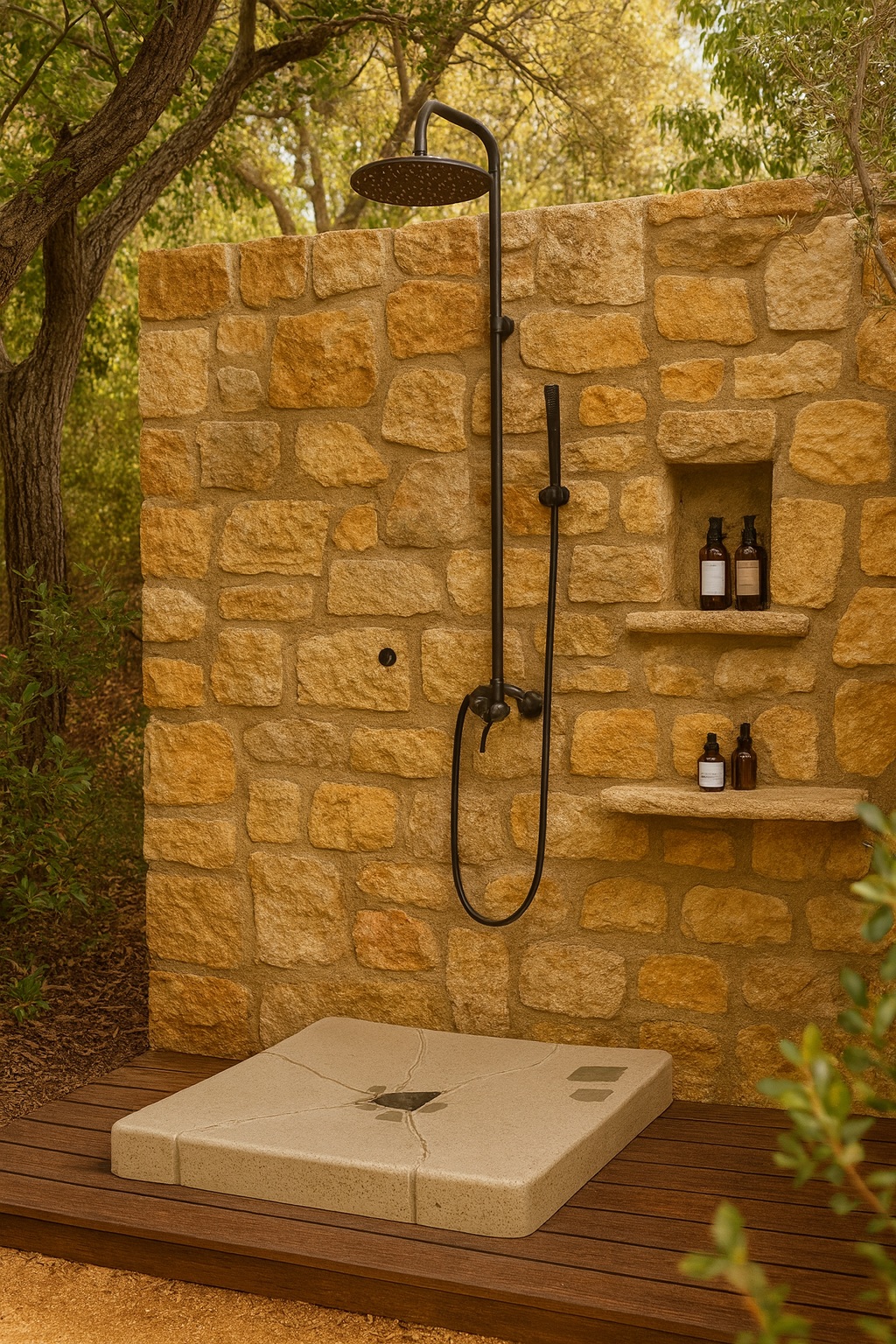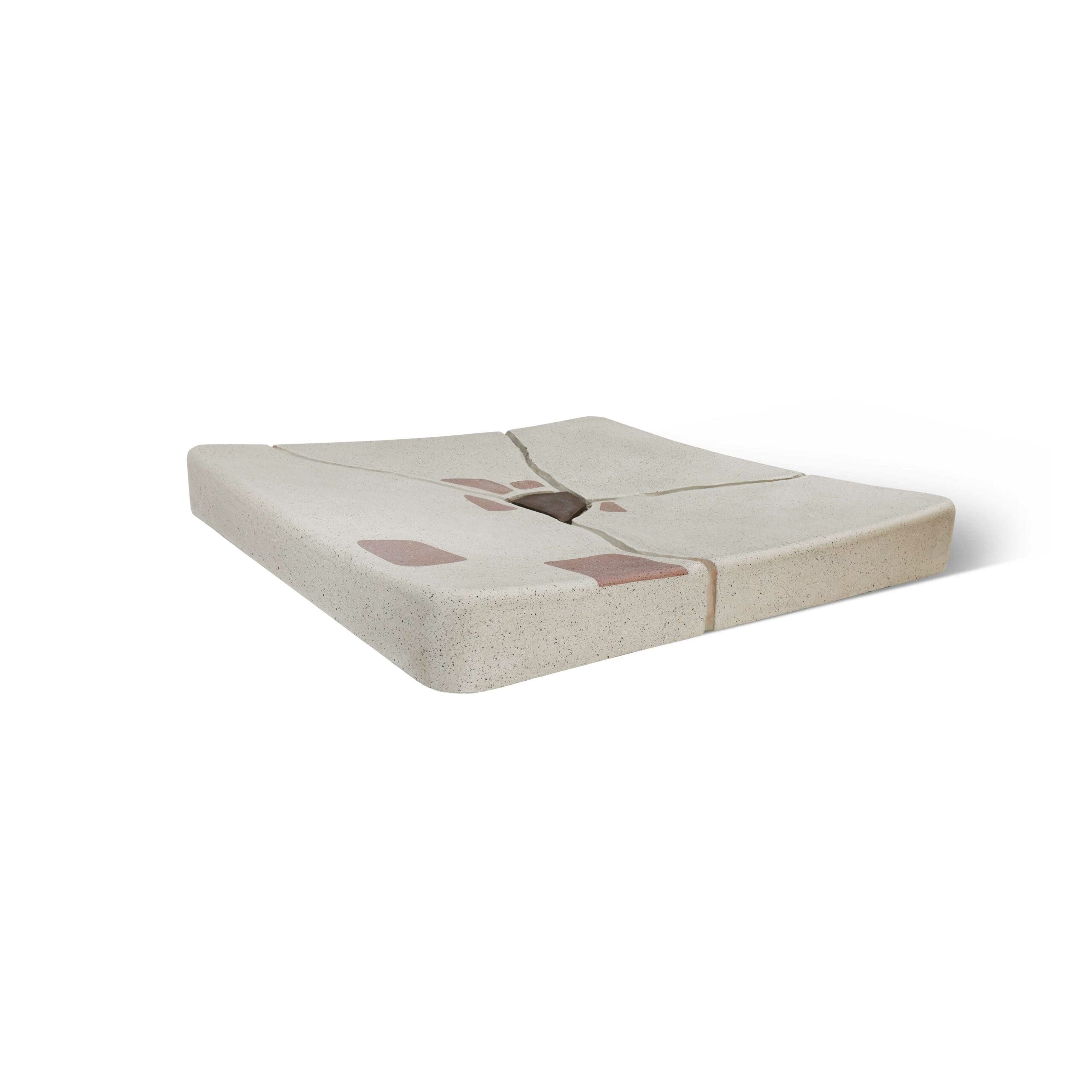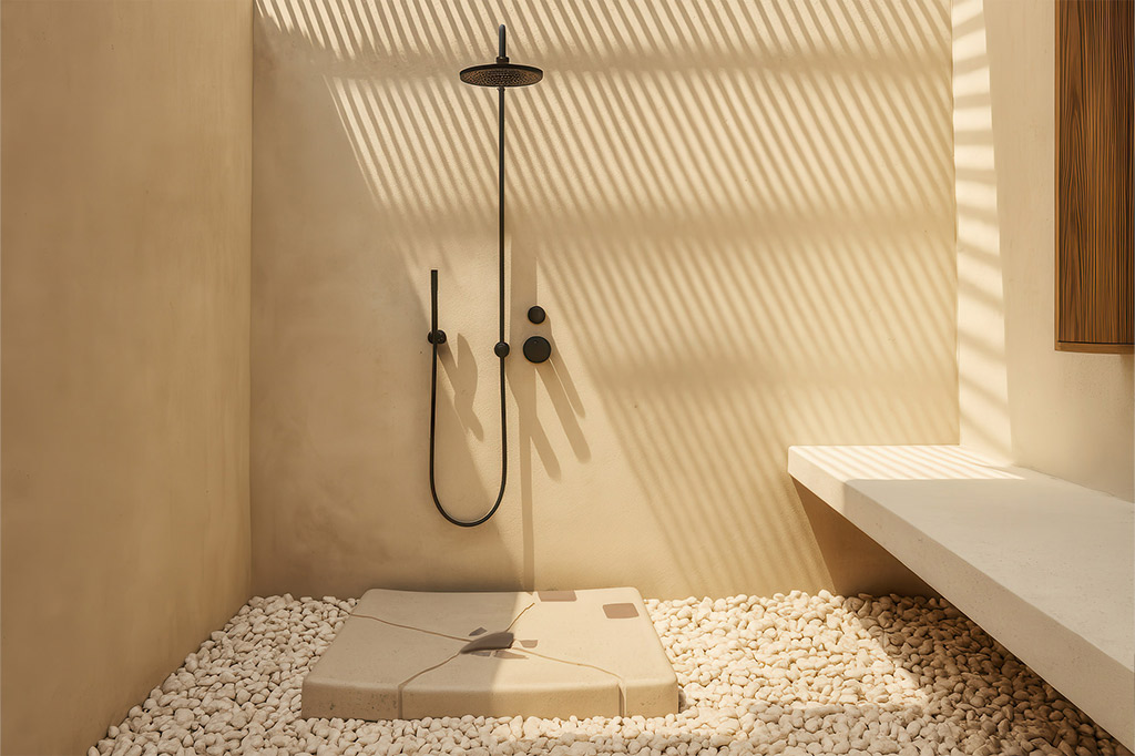 The Erosion shower tray, by CTRLZAK design studio designed for outdoor use and features distinctive grooves as if water eroded them over time, allowing the water to flow while not accumulating. The surface also incorporates stone-like elements that emphasize the natural reference of the soil holding onto the original design concept.