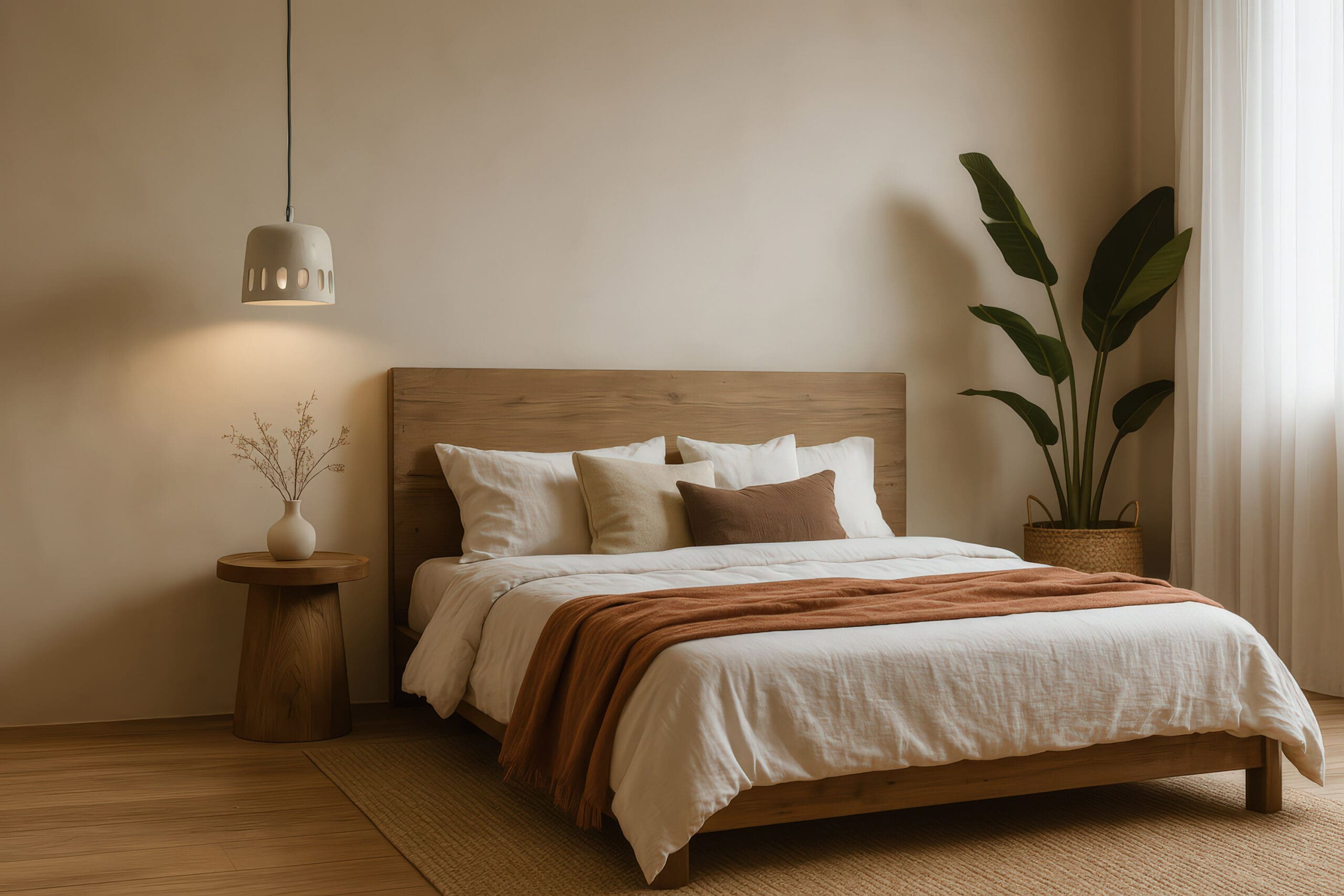 The holes resembling pebbles allow light to diffuse, creating shadows and organic shapes in the space. The Luna pendant fixture imbues a pleasant mood with its character.