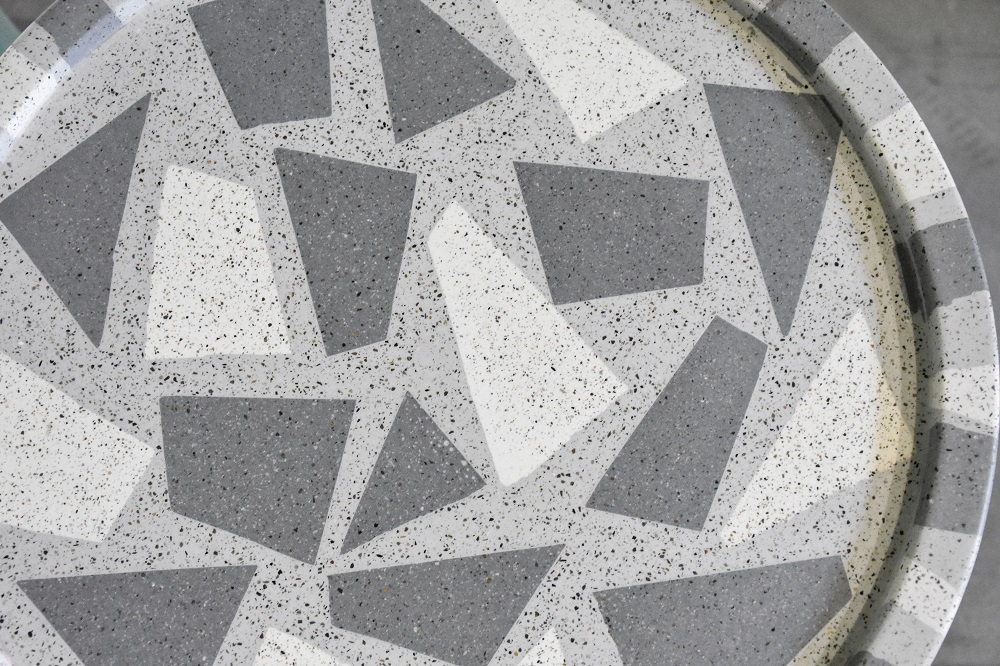 The use of leftover raw materials, introduce a new terrazzo finish for you to choose from, with different colorful aggregates, as well as the already tried and proven uniform, or ”sand” finish, in which the aggregates are invisible.